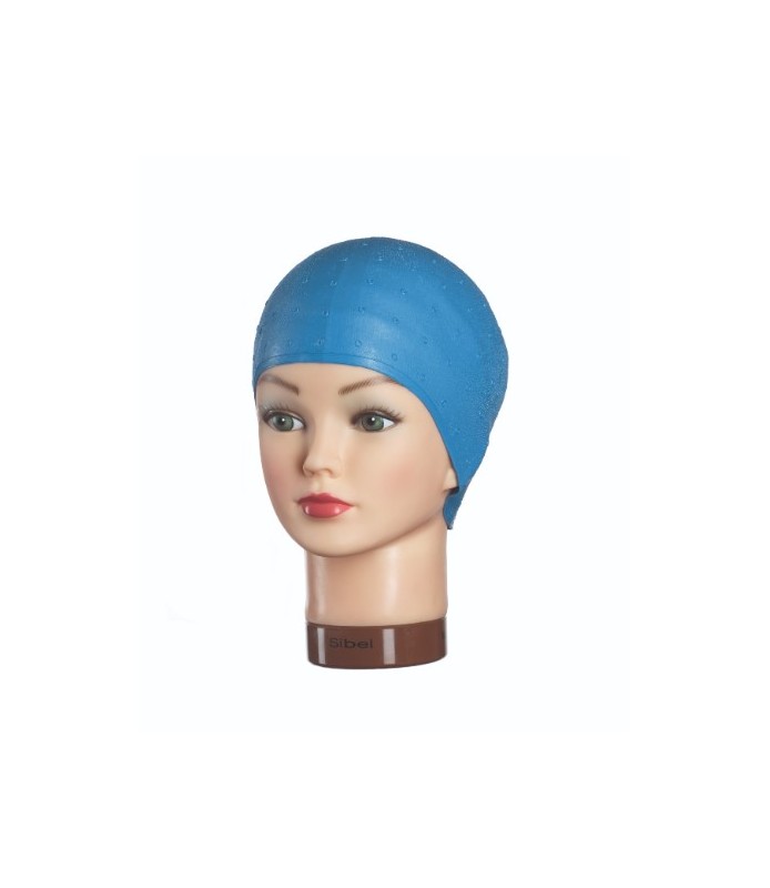 Bonnet mèche pré troué bleue caoutchouc.