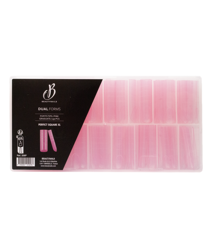 Méthode de rallongement révolutionnaire pour créer des extensions modernes avec un C Curve. Les Dual Forms permettent de réaliser rapidement le rallongement des ongles. Grace à leur apex, ces Dual Forms s’adaptent parfaitement aux ongles naturels et permettent de réaliser des extensions sans chablons, ni capsules. La pose permet d’obtenir des parallèles correctes pour bien placer l’apex. Graduées pour mieux placer la matière et maitriser la longueur.