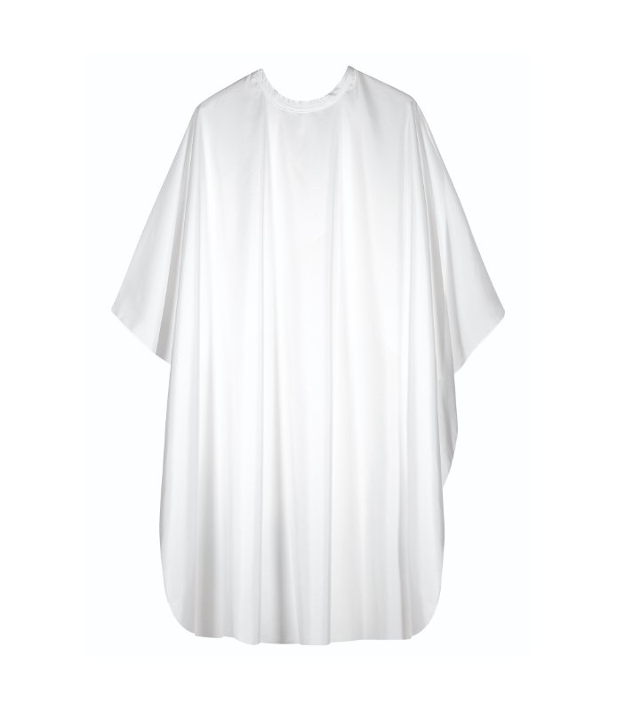 Peignoir cape polyester déperlante, avec fermeture à crochets - blanche.