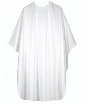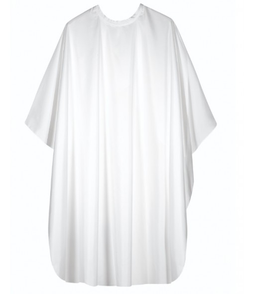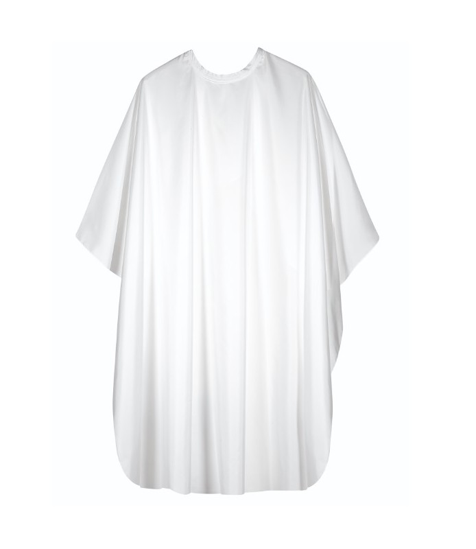 Peignoir cape en polyester, avec fermeture à bouton-pression - sans manches - blanc.