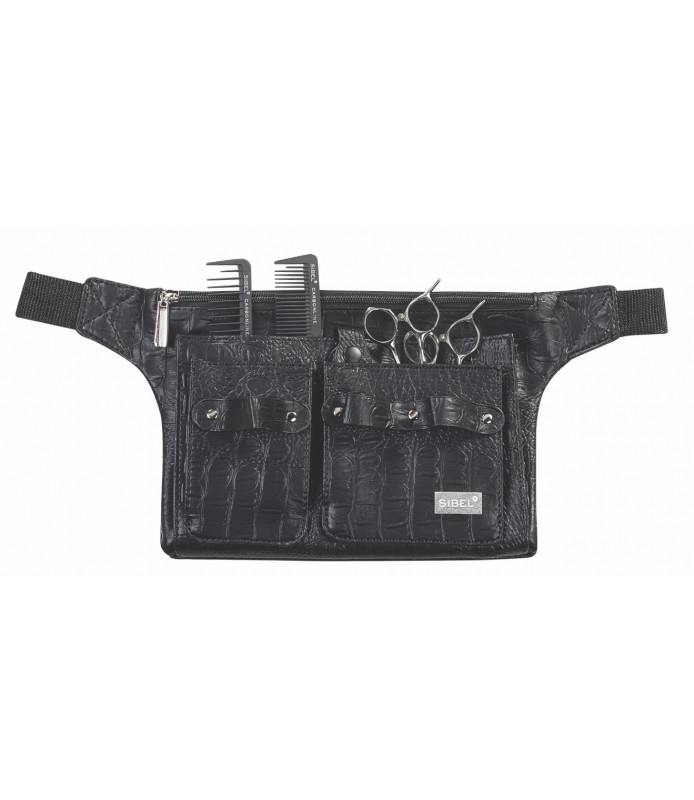 Trousse en véritable cuir pour 7 ciseaux + compartiments peignes ou outillage divers.