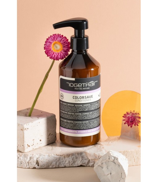 Conditionner COLORSAVE après-shampooing protecteur pour cheveux colorés à base de Fleurs d'Hibiscus qui ravivent la coloration et prolongent son éclat dans le temps. Avec les Extraits de Thé, ils protègent les cheveux et la couleur contre les rayons UV. Utilisé après le Shampooing Colorsave, il protège la chevelure et la rend brillante.