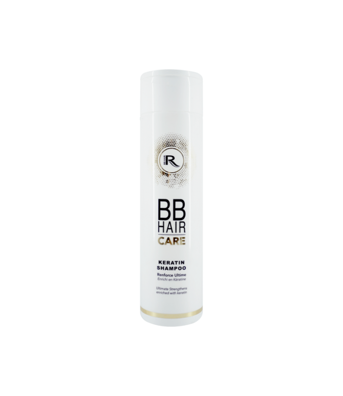 KERATIN SHAMPOO BBHair Care (250ml) est un shampooing hydratant enrichi en kératine hydrolysée qui permet de renforcer les cheveux sans alourdir, d’apporter souplesse, brillance et de respecter le film hydrolipidique des cheveux fragilisés.