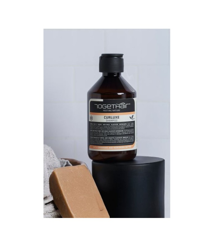 Shampooing Curluxe, élastifiant pour cheveux bouclés et crépus.Nettoie et améliore l'élasticité des cheveux. Apporte hydratation, brillance et douceur. Démêle et définit les cheveux bouclés, leur redonnant légèreté, volume et souplesse.