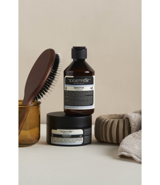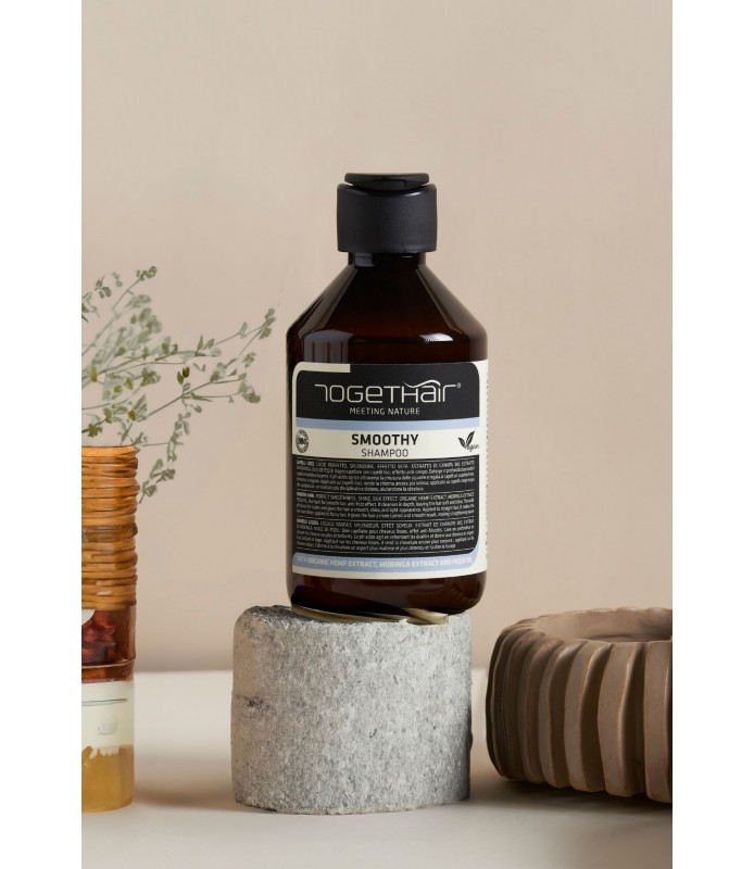 Le shampoing SMOOTHY nettoie sans alourdir et, grâce à son pH acide, referme les cuticules, procurant aux cheveux un aspect lisse, brillant et léger. Appliqué sur cheveux lisses, il les rend encore plus soyeux ; appliqué sur cheveux crépus, il leur confère un aspect plus discipliné et défrisé, favorisant ainsi le lissage.
