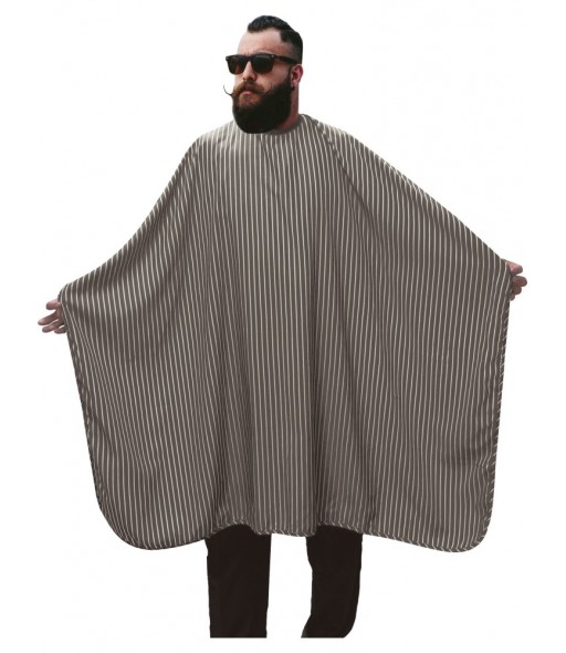 Avec son motif rappelant les barber-shops traditionnels, la cape de coiffure homme à rayures grises et blanches JACQUES SEBAN donnera un côté vintage à votre salon de coiffure et barbier.