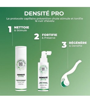 - Un Dermaroller BBHair Densité Pro qui est l'outil essentiel pour booster la densité capillaire et favoriser une chevelure plus forte et plus épaisse. Grâce à ses 540 micro-aiguilles ultra-fines, il stimule la circulation sanguine du cuir chevelu, active la régénération cellulaire et optimise l’absorption des soins fortifiants.