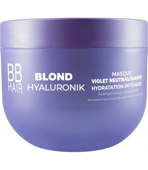 Le Masque Violet Neutralisant Blond Hyaluronik est un soin intense qui corrige les reflets indésirables de tous les blonds (décolorés ou méchés) pour des cheveux éclatants et revitalisés.
