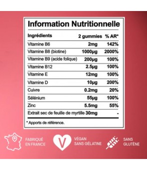 Gummies vitaminés pour cheveux 60 gommes (1mois)