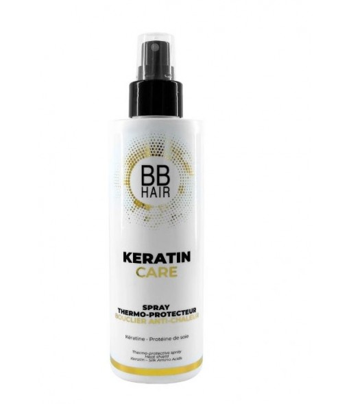 Le Spray Thermo-Protecteur Keratin Care - BBHair offre une protection avancée contre les agressions thermiques. Sa formule professionnelle, qui contient de la kératine et de la protéine de soie, apporte hydratation, prévient la casse et améliore la souplesse des cheveux. Il facilite la coiffure, maîtrise les frisottis et protège la fibre capillaire des agressions thermiques jusqu'à 230°C.