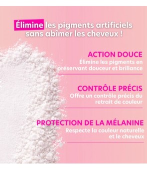 Élimine les pigments artificiels sans compromettre la santé du cheveu.