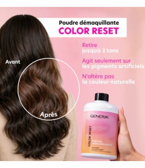 La Poudre Démaquillante Color Reset permet d’éliminer les pigments d’oxydation et les pigments directs de manière progressive et contrôlée, sans altérer la couleur naturelle du cheveu.