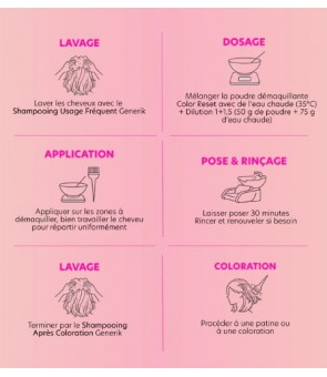 Terminer par le Shampooing Après Coloration Generik. Vous pouvez ensuite procéder à une