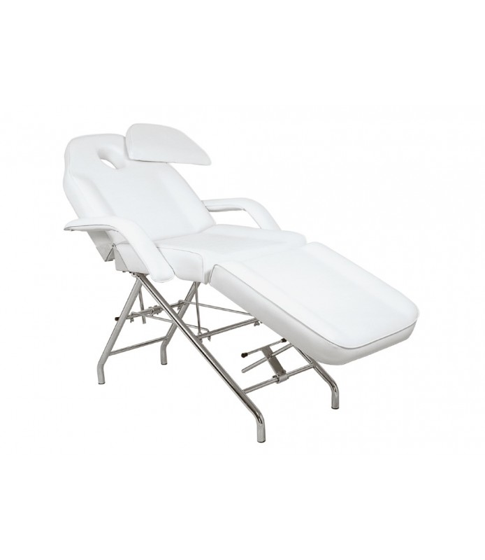 Fauteuil / lit de beauté réglable avec appui-tête hydraulique et amovible et berceau pour le visage multi-usage tête et pied réglables, sellerie grand confort.