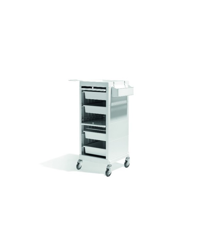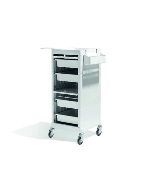 Cette table de service aux quatre côtés pleins garde à l’abri des regards votre matériel de coiffure.