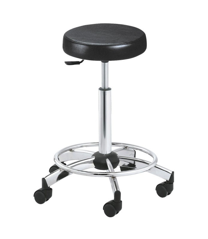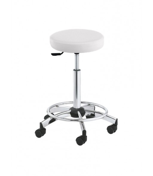 Pieds chromés 5 branches sur pompe à gazEpaisseur pouf en cm : 7Diam. d'assise en cm : 34Roulettes caoutchouc antidérapantes, silencieuses et démontablesHauteur d'assise en cm : 51 / 71