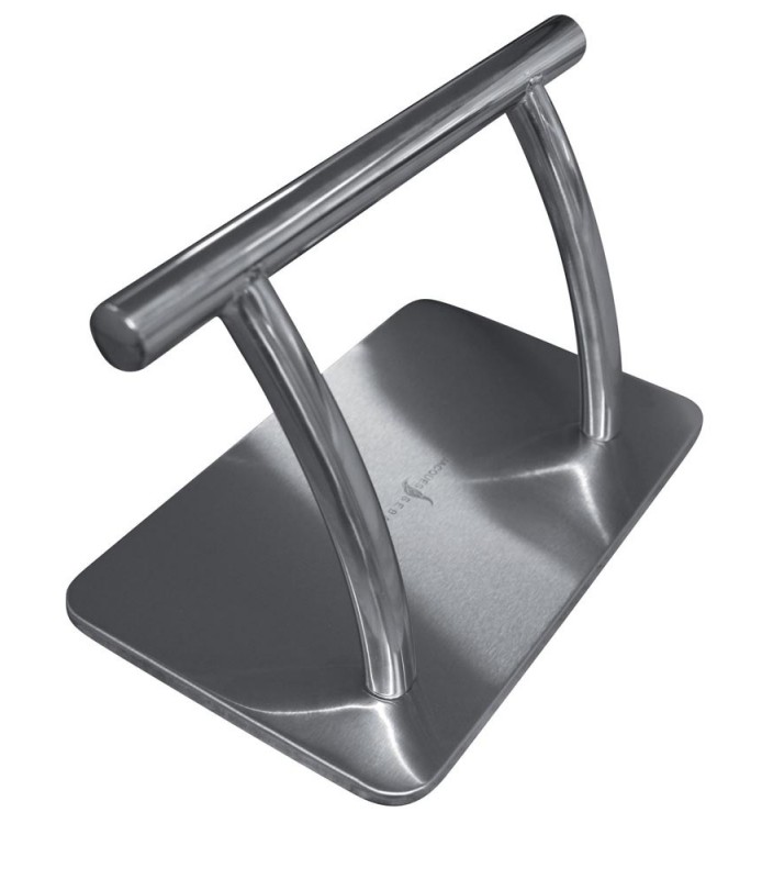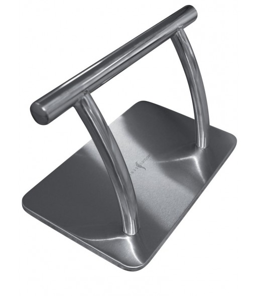 Une barre horizontale et socle rectangulaire en métal chromé très stable.