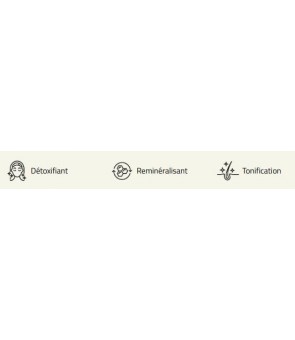 Il a un effet reminéralisant et aide à contrer les effets du stress oxydatif sur la peau. Il protège les cheveux des agressions extérieures et de la pollution et élimine les résidus de produits coiffants, redonnant vitalité, bien-être et légèreté au cuir chevelu et aux cheveux. Il procure une agréable sensation de fraîcheur.