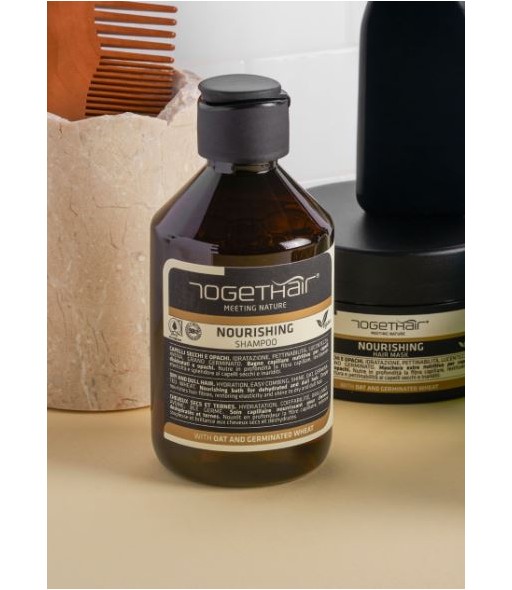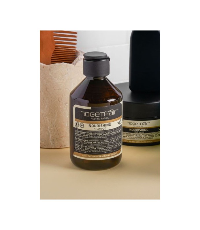 Bain capillaire nourrissant pour cheveux déshydratés et ternes.